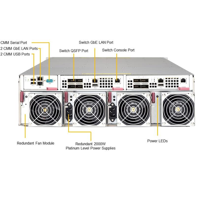 MicroBlade microServer Single Socket H4 (LGA 1151) Supports Intel Xeon E-2100/E-2200 processor, up to 128GB DDR4-2666MHz UDIMM in 4 DIMM slots, onboard C246 chipset, SAS3 (12Gbps) via Avago 3008, Includes: 2x 2.5in SAS3 (12Gbps) HDD Internal Drive Bays, M.2 Form Factor: 2280/22110, 1x SATA DOM, Dual 1GbE LAN ports via Intel i350, IPMI - BLADE ONLY