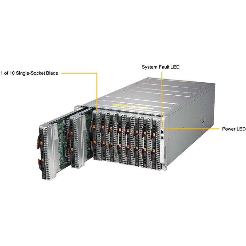 SuperBlade, Supports Single Socket P (LGA 3647), Supporting Intel Xeon W-32xx Processors Support CPU TDP up to 205W, Intel C622 chipset, Up to 3TB in 12 DIMM slots, LR/RDIMM, SATA3 RAID 0/1/05, 3x 2.5in NVMe or 3x 2.5in SATA3 drive bays (Hot-Plug), Dual 10G LAN, 1x IPMI via Chassis Management Module (CMM) - (SBI-6119PW-T3N + B11SPE-CPU-TF)