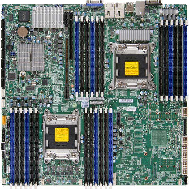 Barebone 2U Rack Intel C602 Chipset 2x Socket-2011 for Dual Intel Xeon E5-2600 / 2600 v2 family processors, QPI up to 8GT/s - Supports Up to 1.5TB DDR3 ECC LRDIMM (or) up to 768GB DDR3 ECC Registered RDIMM (or) up to 128GB DDR3 ECC Unbuffered UDIMM (24x 240-pin DIMM) - On-Board : SATA-600 Controller (RAID), SATA-300 Controller (RAID), Integrated IPMI 2.0 w/ Dedicated LAN and KVM-over-LAN Support, Intel X540 2x 10GBase-T Ethernet, Matrox G200eW Graphics Controller - Includes : 8x Hot-swap 3.5in SATA HDD trays, 2x Riser Cards (1x RSC-R2UW-E8R-UP and 1x RSC-R2UW-2E8E16+), 2x Heatsink / Retention (1x SNK-P0048PS and 1x SNK-P0048PT), 600W 80 Plus Platinum Level Power Supply (1x PWS-605P-1H) - (MBD-X9DRD-iT+ Motherboard + SC825TQ-600WB 1U Chassis - (Black)