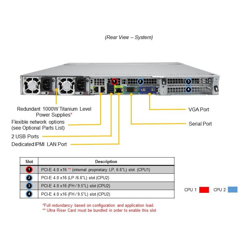 | 1U | 2 PCI-E 4.0 x16 (FH/HL 9.5") slots | |