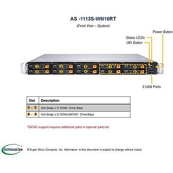 Barebone 1U Rackmount for Single AMD EPYC 7000, up to 2TB DDR4 Reg ECC 2666MHz memory in 16 DIMM slots, 10 Hot-Swap 2.5in drive bays with support for 10 U.2 NVMe drives, Dual 10BaseT LAN ports, IPMI 2.0 + KVM, Redundant 750W Power Supplies (CSE-116TS-R706WBP3 + MBD-H11SSW-NT) - Black- AS -1113S-WN10RT