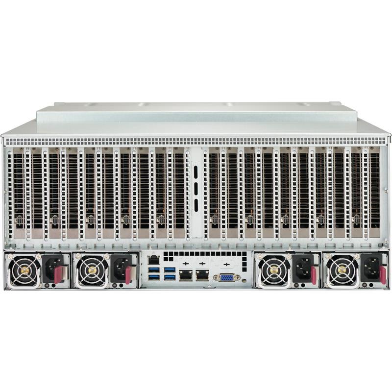 Barebone 4U Rackmount SuperServer for Dual Intel Xeon Scalable CPU Gen. 2. Up to 6TB DDR4-2933MHz memory in 24 DIMM slots. Onboard 2x 10GBase-T LAN ports, VGA Connector, 12x PCI-E Slots. 2000W Redundant Power Supply (X11DPG-OT-CPU, X11DPG-O-PCIE + CSE-418GTS-R4000BP2)