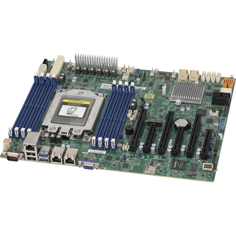 Motherboard ATX, Support Single Socket SP3, Supporting AMD EPYC 7001/7002 Series Processor (Board revision 2.x required), Up to 32-Core, Up to 64-Core (Board revision 2.x required). Up to 2TB DDR4-3200MHz DIMM in 8 memory slots, System on Chip chipset, onboard 2x PCI-E 3.0 NVMe, 2x 1GbE LAN port, 1x IPMI LAN port, 2x SATADOM, 6x PCIe 3.0, 1x M.2 slot - MBD-H11SSL-NC-B