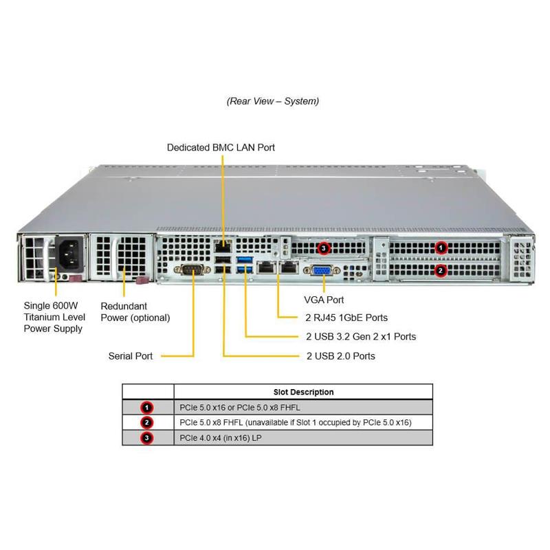 5. Default single Titanium 600W Power Supply; Optional redundant power by adding 1x Power Supply Module