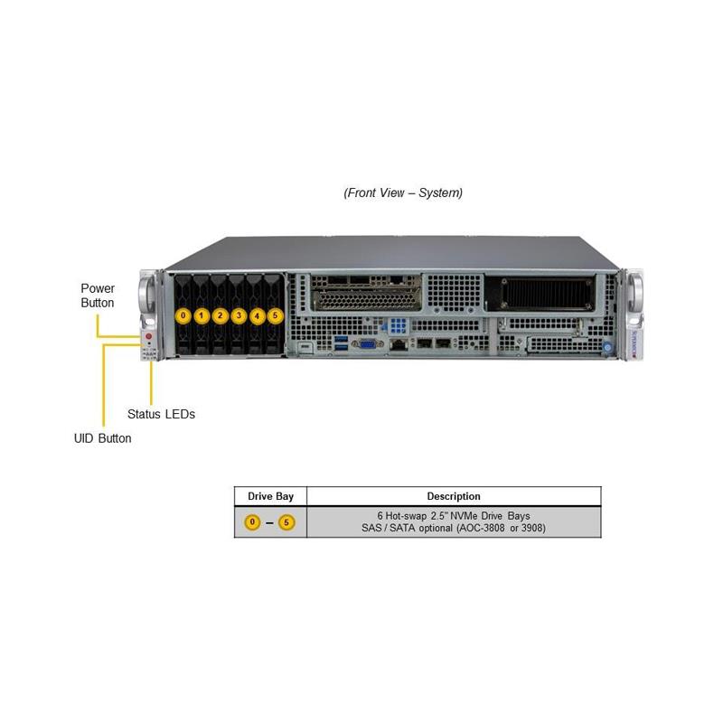 | 6 front hot-swap 2.5" NVMe drive bay(s) | ||